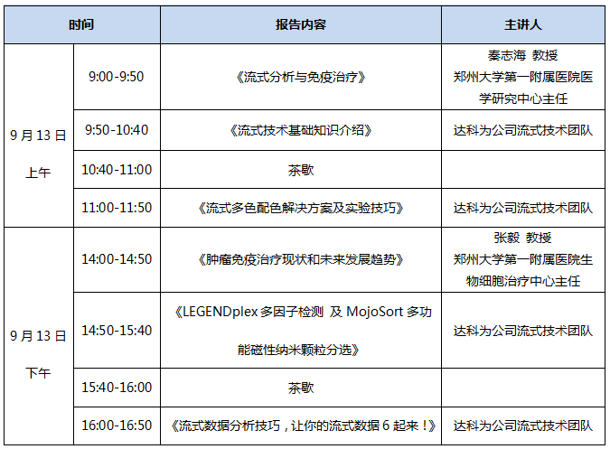 金秋九月,達(dá)科為流式培訓(xùn)班要來鄭州啦,名師講解,理論與實(shí)驗(yàn)雙管齊下,輕松完成流式八色檢測分析,更有LEGENDplexTM多因子Demo演示,磁珠分選Demo以及De Novo 流式軟件數(shù)據(jù)分析演示。流式上機(jī)名額有限,歡迎踴躍報(bào)名!理論培訓(xùn)和實(shí)驗(yàn)操作均免費(fèi)喲!