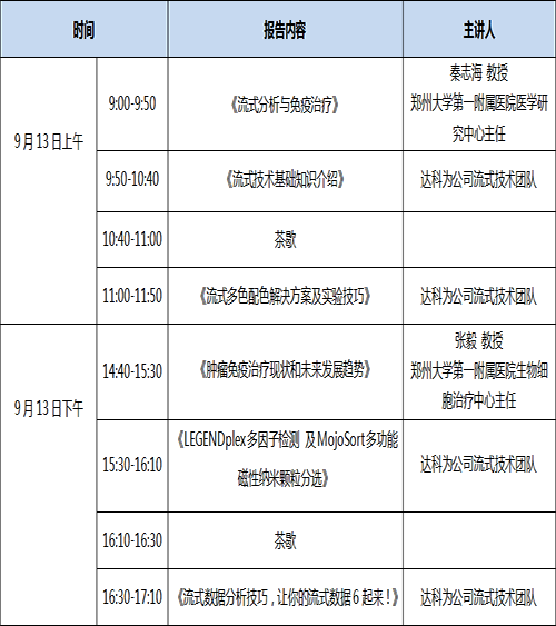 金秋九月,達科為流式培訓(xùn)班要來鄭州啦,名師講解,理論與實驗雙管齊下,輕松完成流式八色檢測分析,更有LEGENDplexTM多因子Demo演示,磁珠分選Demo以及De Novo 流式軟件數(shù)據(jù)分析演示。流式上機名額有限,歡迎踴躍報名!