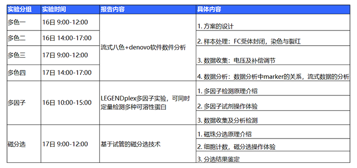 *注:請注意多色一、二、三、四為同一實(shí)驗(yàn),請根據(jù)自己的時(shí)間報(bào)名,請勿重復(fù)報(bào)名。上機(jī)實(shí)訓(xùn)多色實(shí)驗(yàn)擬招40人,多因子實(shí)驗(yàn)與磁分選實(shí)驗(yàn)分別擬招10人。