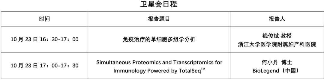 除了日常的展臺(tái)活動(dòng),我們誠摯的邀請您10月23日下午16:30-17:30在腫瘤免疫與腫瘤免疫治療第七分會(huì)場參加我們的衛(wèi)星會(huì),達(dá)科為&BioLegend將為大家?guī)碇黝}為“TotalSeq 技術(shù)助力免疫學(xué)研究及免疫治療的單細(xì)胞多組學(xué)分析”的衛(wèi)星會(huì),以下是會(huì)議日程安排,歡迎您準(zhǔn)時(shí)蒞臨,現(xiàn)場還有精美禮品,先到先得哦!