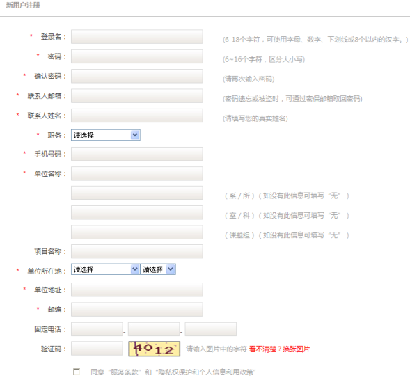 2.進(jìn)入注冊(cè)頁面,根據(jù)要求認(rèn)真填寫注冊(cè)信息,帶紅色標(biāo)記的為必填項(xiàng),并同意注冊(cè)條款,就可生成新用戶。