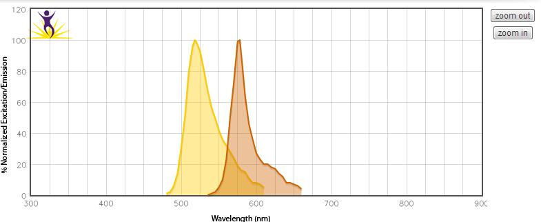 用激光束激發(fā)兩種或兩種以上熒光染料而發(fā)出不同波長的熒光,從理論上講,可以選擇光學組件將它們分開,僅使一種熒光被一種熒光探測器收集處理,而檢測不到另外一種熒光。但實際上由于熒光素的發(fā)射波長是正態(tài)或偏正態(tài)曲線,即有很寬的范圍,熒光素之間的波譜常有重疊現(xiàn)象,如下圖1-1所示。由此,我們需要進行補償調(diào)節(jié),補償?shù)膹姸葘㈦S著各熒光探測器的放大倍數(shù)(電壓)的變化而變化,特定的電壓對應特定的補償參數(shù)。