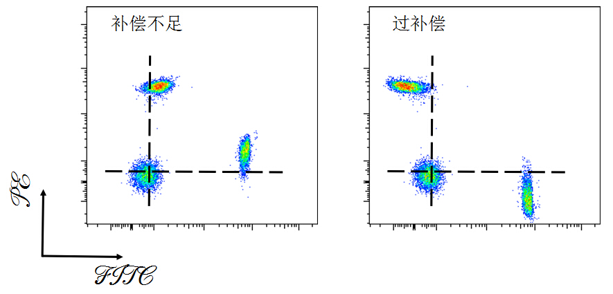 圖1-2 FITC和PE通道補償調(diào)節(jié)