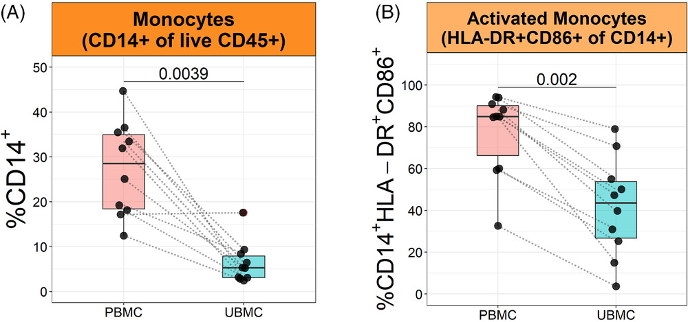 圖1 在人類足月剖腹產(chǎn)分娩時,PBMC和UBMC(uterine blood mononuclear cells,子宮血單個核細胞)樣本的白細胞分析。