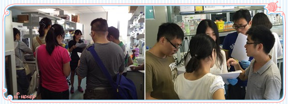 收集好血液樣本后, 每個小組根據(jù)protocol開始實驗操作,指導人員對關鍵步驟進行說明并進行演示,如加樣,溶紅,加抗體混勻,洗滌,避光孵育等步驟。