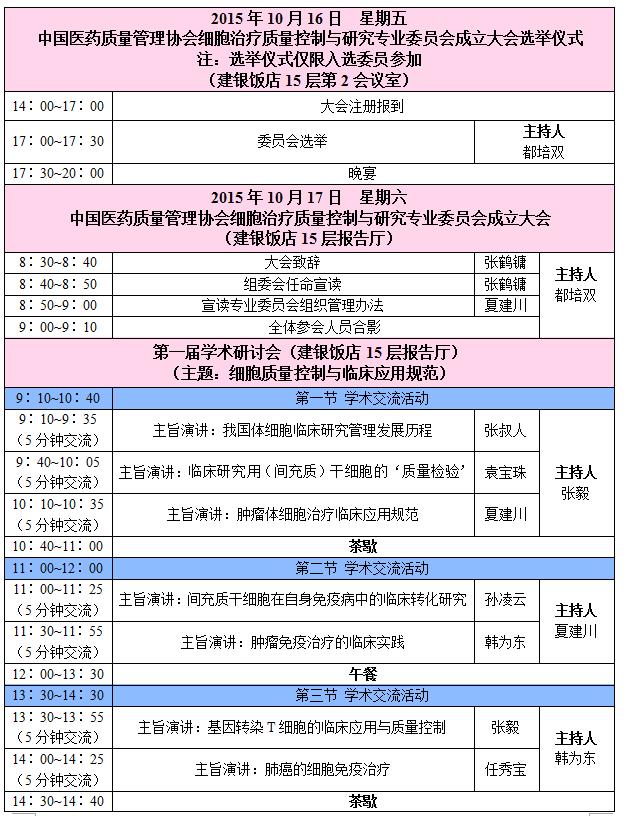 由中國醫(yī)藥質(zhì)量管理協(xié)會細(xì)胞治療質(zhì)量控制與研究專業(yè)委員會(籌)主辦、中山大學(xué)附屬腫瘤醫(yī)院、鄭州大學(xué)一附院、拜西歐斯(北京)生物技術(shù)有限公司聯(lián)合承辦的“中國醫(yī)藥質(zhì)量管理協(xié)會細(xì)胞治療質(zhì)量控制與研究專業(yè)委員會成立大會暨第一屆學(xué)術(shù)研討會”將于2015年10月16-17日在北京召開,成立大會將選舉產(chǎn)生第一屆委員代表和常務(wù)委員會委員,研討會將圍繞“細(xì)胞質(zhì)量控制與臨床應(yīng)用規(guī)范”主題開展學(xué)術(shù)交流,屆時將邀請國內(nèi)外細(xì)胞治療領(lǐng)域(包括干細(xì)胞和免疫細(xì)胞)的專家學(xué)者就研討會主題作學(xué)術(shù)報告。本專業(yè)委員會是細(xì)胞治療質(zhì)量控制與研究領(lǐng)域學(xué)術(shù)交流的大平臺,將定期舉辦各種規(guī)模的學(xué)術(shù)交流會議,通過學(xué)術(shù)會議,以期達(dá)成行業(yè)共識,推動細(xì)胞制劑質(zhì)量控制標(biāo)準(zhǔn)體系的建立和相關(guān)政策出臺,使我國的細(xì)胞治療行業(yè)在規(guī)范化的基礎(chǔ)上健康有序發(fā)展。