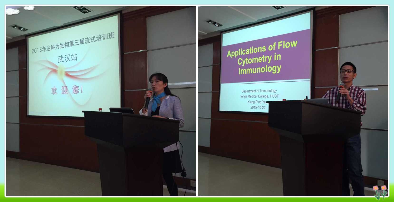 10月22日,2015年達科為生物第三屆流式培訓班—武漢分站在華中科技大學同濟醫(yī)學院正式拉開帷幕。課程分為理論課與上機實驗,10月22日到23日上午是理論課程,23日下午是BioLegend的Mojosort磁分選實驗,24日到25日流式上機實驗。
