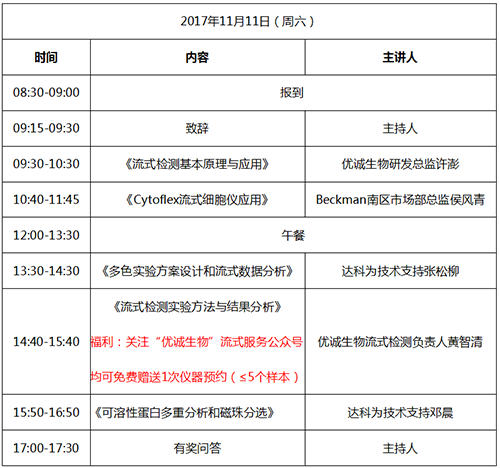 抓住秋天的尾巴,流式培訓班要來長沙啦。本次達科為生物攜手優(yōu)誠生物,為熱愛流式學習的您準備了內(nèi)容豐富的流式相關(guān)理論課程及實驗課程。達科為生物作為國內(nèi)一流的生物試劑供應(yīng)商,2017年在南京、杭州、武漢、北京、蘇州、溫州、鄭州等地舉辦了二十余場免費流式培訓班,參加培訓人員達到3000人,取得了熱烈的反響和良好的反饋。優(yōu)誠生物是湖南省乃至全國內(nèi)的優(yōu)秀的科研服務(wù)商,提供從課題設(shè)計、實驗實施到成果發(fā)表與轉(zhuǎn)化的全方位一站式服務(wù)。本次雙方合作,共同為您獻上一場流式盛宴。