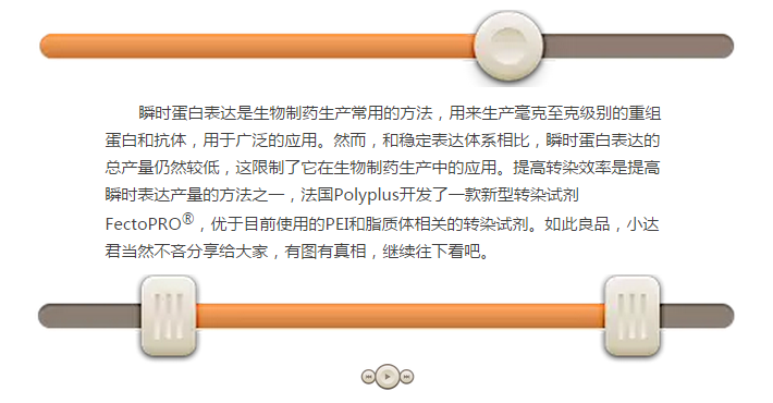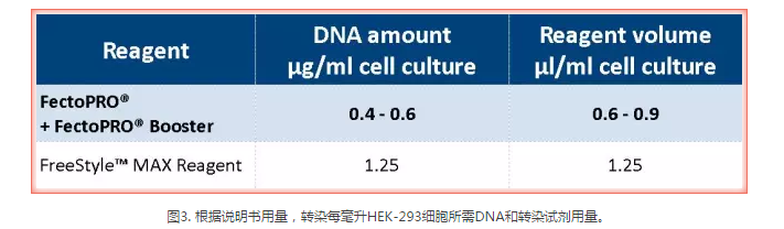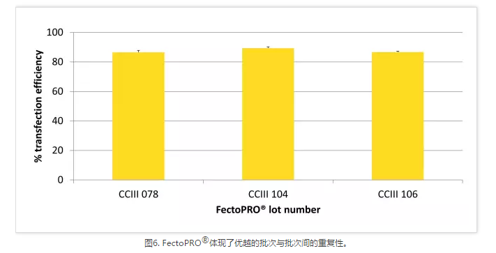 高質(zhì)量質(zhì)粒DNA的制備成本非常高,尤其是在進(jìn)行大規(guī)模蛋白質(zhì)生產(chǎn)時需要大量的DNA和許多質(zhì)粒。FectoPRO?通過使用0.4~0.6 μg/106/ml的細(xì)胞培養(yǎng)液將DNA成本縮減了40%~60%,使其成為生物制藥生產(chǎn)流程的一項(xiàng)經(jīng)濟(jì)實(shí)惠的選擇。
