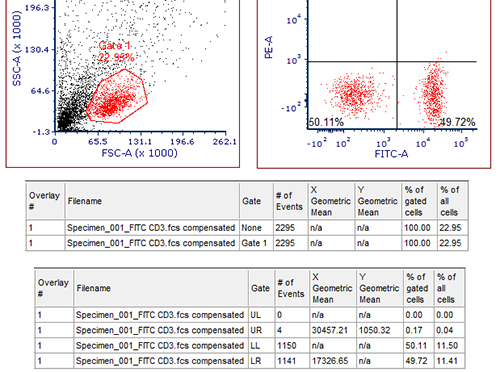 點(diǎn)擊OK,則FITC滲漏到PE通道的熒光被扣除。