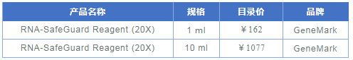 將RNA-SafeGuard Reagent (20X)用滅菌水稀釋成1X濃度,65°C反應(yīng)20分鐘滅活水中、瓶中的RNase。剩余的1X RNA保存液