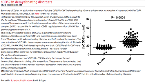 Hycult Biotech公司在天然免疫研究方面積累了豐富的經(jīng)驗,其新明星產(chǎn)品Soluble CD59 ELISA試劑盒已經(jīng)在文獻中發(fā)表,文獻結(jié)果如圖顯示: