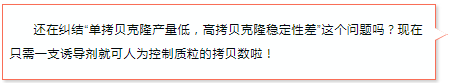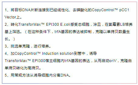 首先安利一下Epicentre的專利技術(shù)——CopyControl?克隆系統(tǒng),能夠讓您共享單拷貝和高拷貝的優(yōu)點(diǎn)。CopyControl?克?。菏紫纫詥慰截愋问缴L,單拷貝可以確保插入穩(wěn)定及成功克隆編碼基因序列;在需要的時(shí)候,通過誘導(dǎo)液誘導(dǎo)成高拷貝克隆,以便下游應(yīng)用所需。這一系統(tǒng)可以用來構(gòu)建PCR克隆,對于BAC,F(xiàn)osmid文庫等大型質(zhì)粒格外有用。