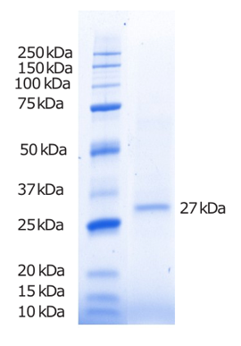 STING通過(guò)胞漿區(qū)域與CDNs結(jié)合。InvivoGen提供的重組STING蛋白對(duì)應(yīng)可溶性的胞漿結(jié)構(gòu)域(aa 137-379)R232突變型,是普遍的人源STING蛋白的同型。這個(gè)27kDa的重組蛋白產(chǎn)生自哺乳動(dòng)物中國(guó)倉(cāng)鼠卵巢細(xì)胞系(CHO),通過(guò)親和層析純化,不帶標(biāo)簽,能夠被市面上的商品化人源STING抗體所識(shí)別。