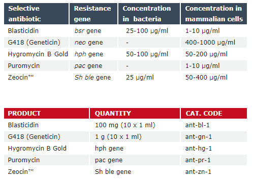 InvivoGen提供一系列細(xì)胞培養(yǎng)測(cè)試的抗生素以確保無(wú)假陰性篩選穩(wěn)轉(zhuǎn)哺乳動(dòng)物細(xì)胞株。這些抗生素?zé)o菌且無(wú)內(nèi)毒素污染以避免細(xì)菌內(nèi)毒素,也被稱(chēng)為L(zhǎng)PS,對(duì)轉(zhuǎn)染細(xì)胞造成的有害影響。InvivoGen嚴(yán)格驗(yàn)證產(chǎn)品的物理化學(xué),通過(guò)微生物和細(xì)胞培養(yǎng)以確保其功能活性。所有出品的抗生素被證實(shí)對(duì)哺乳動(dòng)物細(xì)胞表現(xiàn)出長(zhǎng)期的穩(wěn)定性并且沒(méi)有細(xì)胞毒性。
