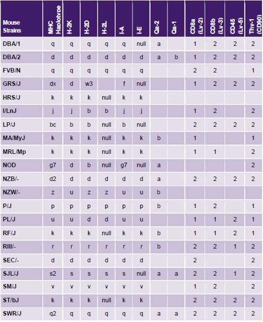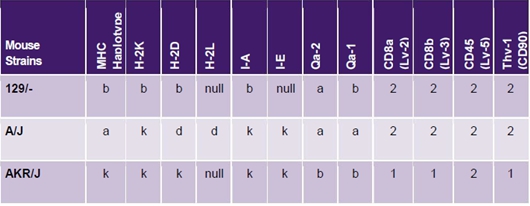 MHC分子具有高度多態(tài)性的特點,但是由于實驗室小鼠都是近交系小鼠,所以每一個品系的小鼠都具有獨特的 MHC 單倍型。不同小鼠品系的 MHC 單倍型用小寫字母(a、b、d、k、q、s等)進行命名區(qū)分,比如 BALB/c 小鼠的MHC單倍型為 H-2Kd、 H-2Dd、 H-2Ld、 I-Ad 和 I-Ed 。
