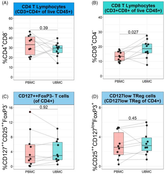 圖7 PBMC和UBMC白細胞群中T細胞群的檢測。